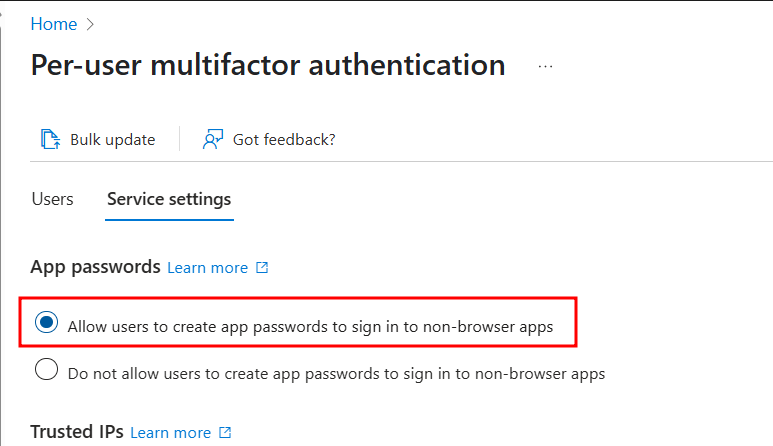 Now go to myaccount.microsoft.com → Security info → add new app password. Remember this app password.