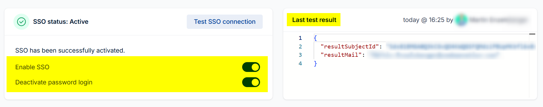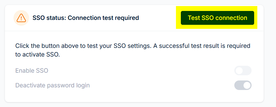 If you make any changes to connection-related SSO settings, Single Sign-On will be automatically deactivated until you completed another SSO connection test.